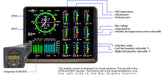 The upper semicircular bar graph shows the RPM (Revolutions per Minute) and the lower semicircular bar graph shows the MAP (Manifold Pressure). These are shown both graphically and digitally. Power settings entering red line are displayed by flashing the ALERT icon and flashing message on the bottom left scanner section of the screen. Percent horsepower is displayed digitally underneath the MAP arc