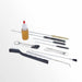 It includes an extra-long 12″ pick-up tube brush, HVLP brush, body cavity brush, detail end brush, nylon bristle parts brush, 5-pc. micro brush set, 6-pc. precision needle set, and spray gun lubricant